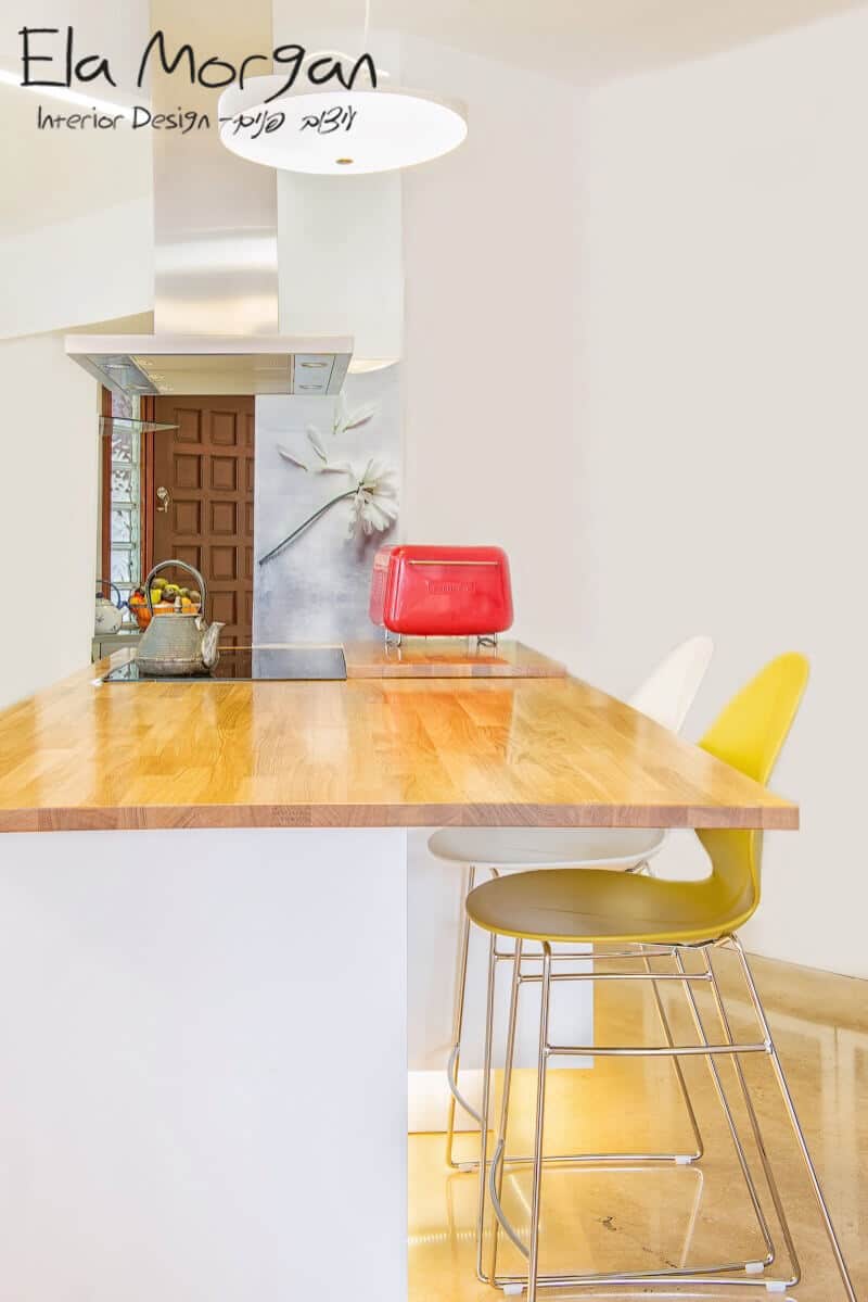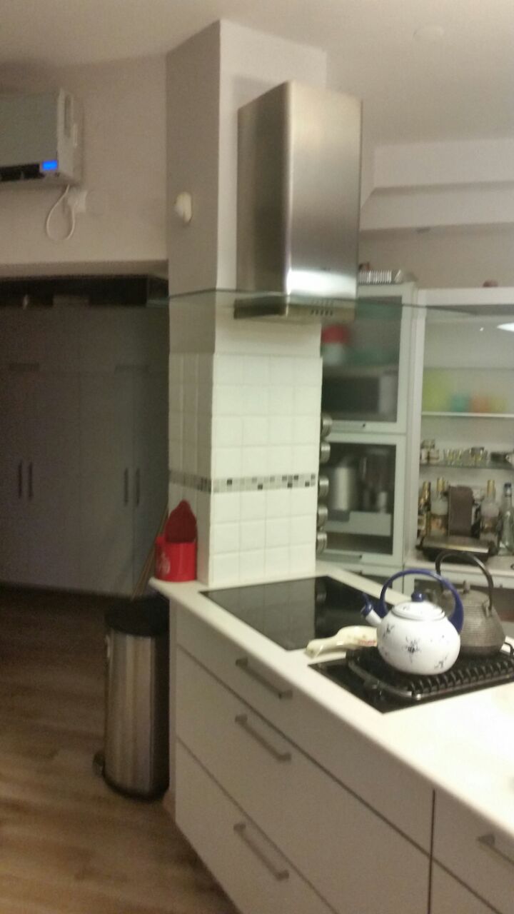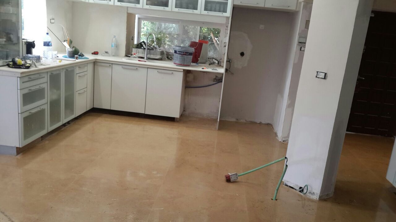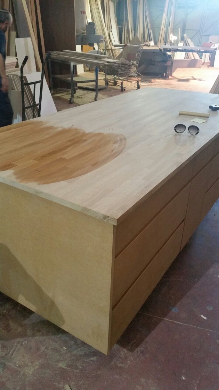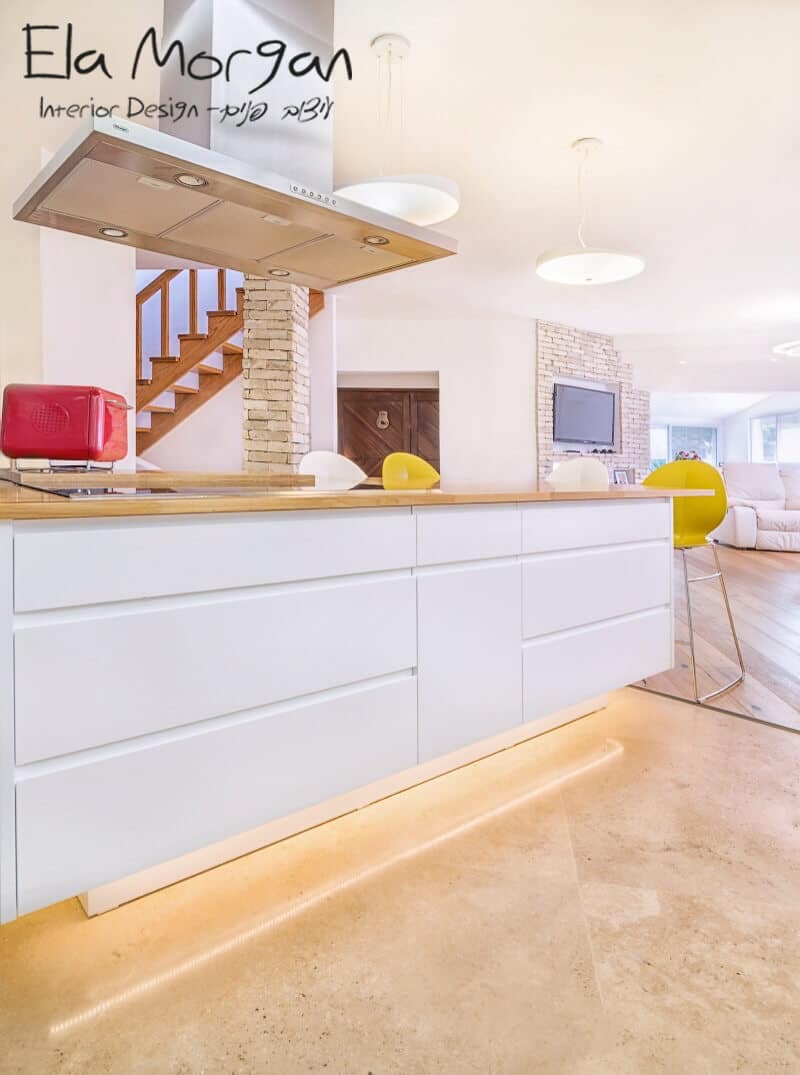 The travertine floors in the kitchen corresponds with the parquet flooring we have laid all over the house and gives a warm, comfortable feeling.